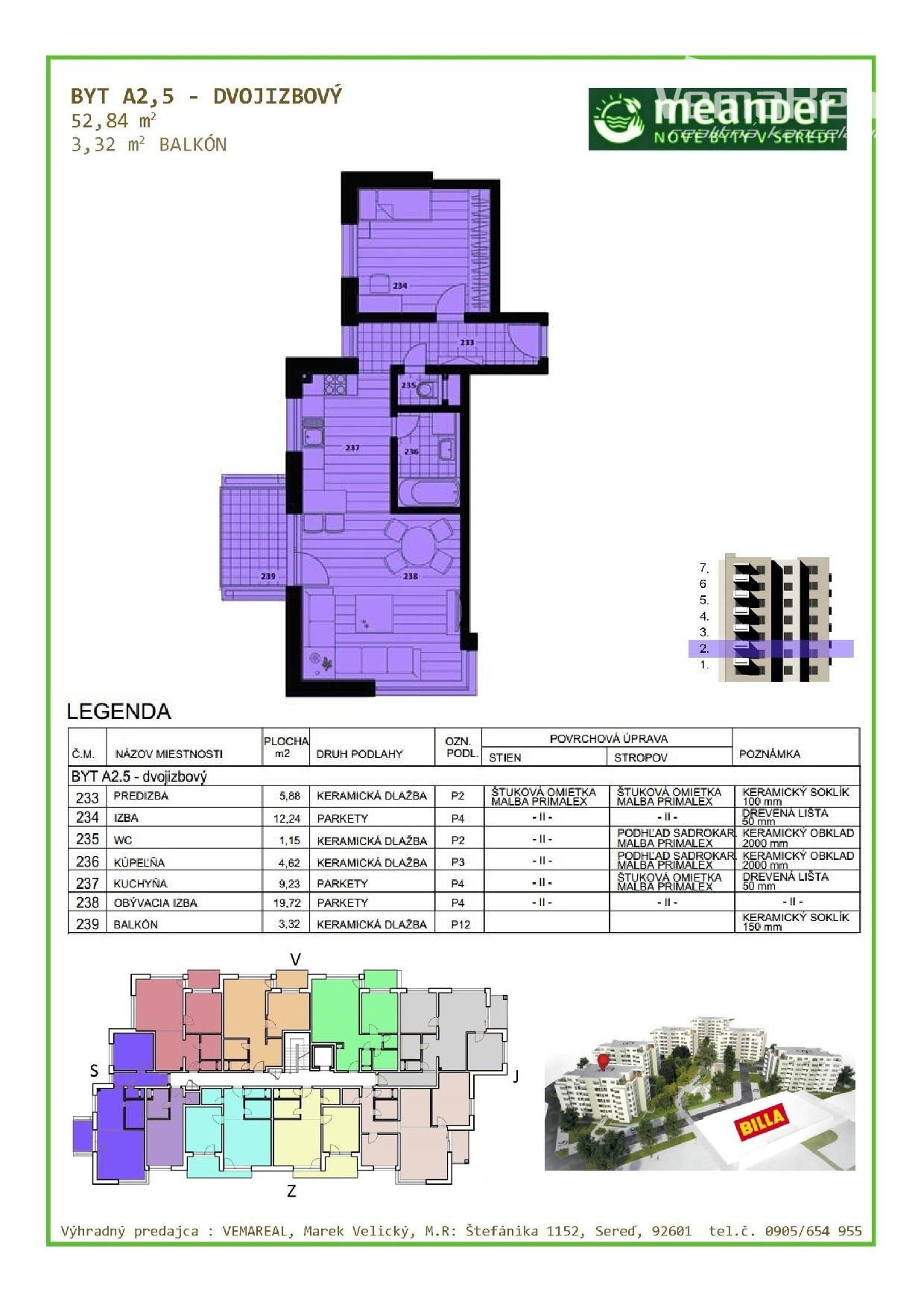 Na predaj krásny 2-izb. Byt v Seredi, v OV, na ulici Kukučínovej - MEANDER o rozlohe: obytná plocha 52,84m2 + balkón 3,32 m2. Byt sa predáva zariadený, ako vidieť na fotografiách. Má modernú kuchynskú linku so zabudovanými spotrebičmi, rolldor a posteľ v spálni, práčku, bezp. dvere... Kolaudácia BD v roku 2020.